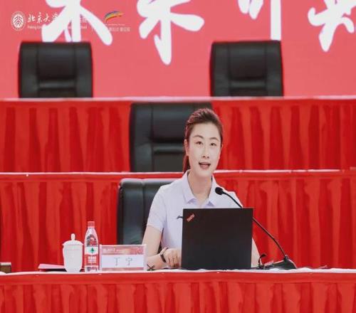 2024年9月1日,北京大学团委副书记、体育教研部教师丁宁在北京大学深圳研究生院“开学第一课”上作分享。图据北京大学新闻网