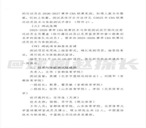 据探长了解,中国篮协已向CBA各俱乐部下发新赛季体测通知。