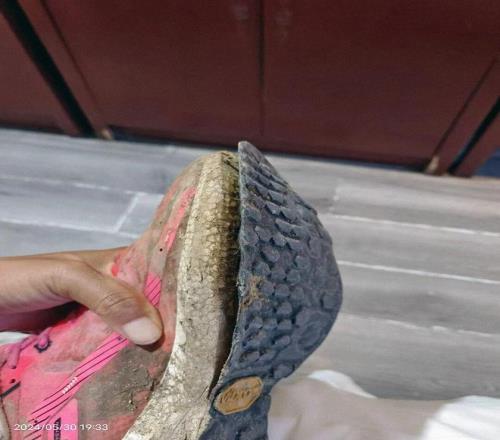 迟令杰穿着这双掉了底的旧鞋