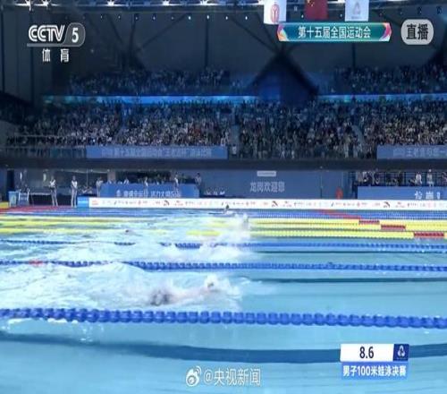 据央视体育消息,在第十五届全国运动会男子100米蛙泳决赛中,覃海洋代表上海队出战,夺得金牌。恭喜!