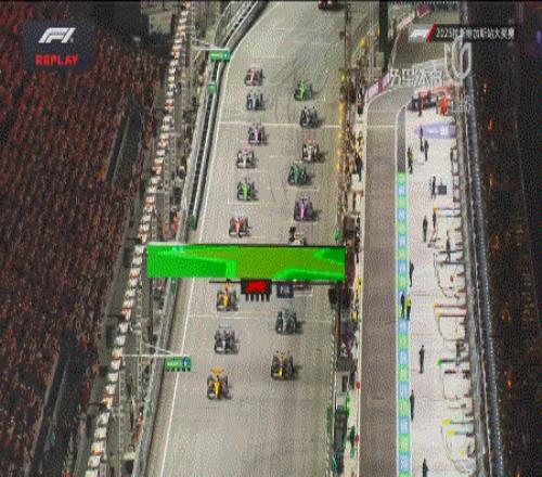 五盏红灯熄灭,比赛正式开始!诺里斯的起步极具侵略性,但是在一号弯切线发力过猛丢掉了自己的入弯线路,身后维斯塔潘抓住机会直接完成超越来到第一!而因为节奏被影响,诺里斯此后还被拉塞尔超越掉到第三名。