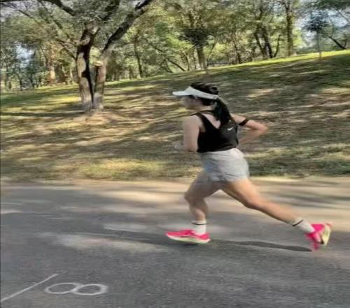 七月,她认识了龙井教练和跑步学院的教练团队,他们教她姿势跑法,教她学习控制心率、脚掌落地、快速交换提拉、缩小步幅、增加步频、紧凑摆臂,锻炼臀腿力量。他们提醒她、敦促她、督导她,消除她的执念,带她完成了人生中第一个十公里,7月跑量155,她有了归属,她从此不再迷茫,把目光稳稳放在脚下。