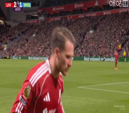 第34分钟,维尔茨展现了自己娴熟的小技术,他卸球后精彩摆脱防守,将球分出,这也获得了全场利物浦球迷的喝彩。