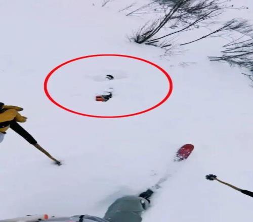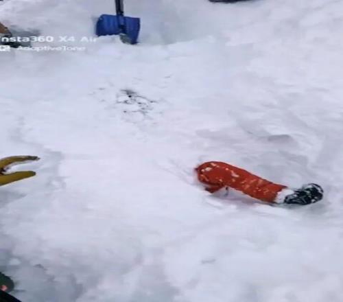 老哥滑雪时发现雪里伸出一只脚!最终在活埋前把人挖出,惊险...